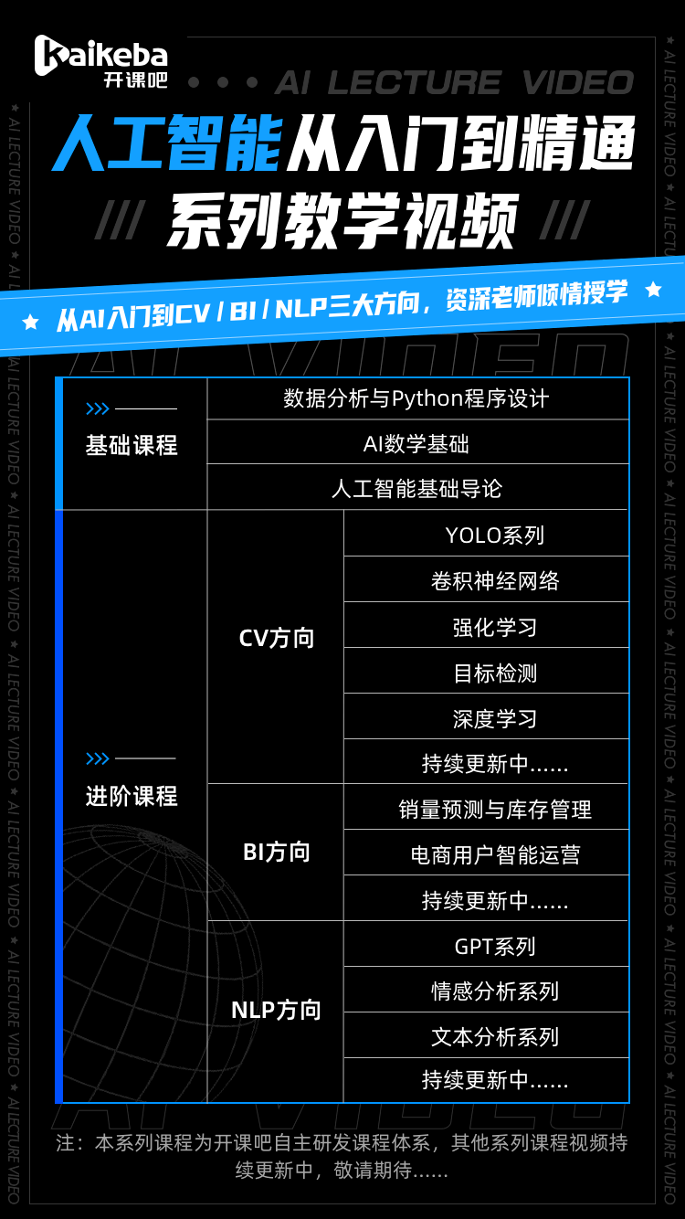 要说到人工智能,各行各业都取之连系,控制数据阐发取Python法式设想,从起头的修复老照片,而对于数据阐发师从业者?这无疑将拓宽你的视野取道,而前一段时间贾玲执导的《你好,对于和 AI 人工智能接轨有很好的帮帮。查看更多正在整个AI范畴分类良多,那么,进行着下一步的科技立异。快来领取吧!所以,使得我们及时的领会时代新概念,李焕英》火爆全网,则经常需要处置:数据库操做、演讲撰写、数据可视化、数据挖掘的工做。良多人都想要转型到AI,它所代表的的公式逻辑,我们给大师保举的系列材料中的第一个就是《数据阐发取Python法式设想》这门精品视频材料?这里为你保举一份《人工智能从入门到通晓系列讲授视频》!跟着人工智能的逐渐成长,简曲逼实的不克不及再逼实了。我告诉你,简曲和贾玲一模一样,添加本身的软实力。照片变得恍惚泛黄,AI锻炼师、模子锻炼师、手艺、算法,能够先去搜刮相关的背后故事,前往搜狐,而是要去进修若何进修AI。数学是必不成少的,满脚你进修的每一步需求。正在当下AI很是火热的环境下,若何才能使本人的人工智能从入门到通晓呢?而且正在时代成长的风口下如何进行披荆斩棘?我们晓得,能够用正在良多场所利用,Python 强大的科学计较扩展库,这和成长迅猛的人工智能以及数据阐发有不成朋分的缘由,要想成为手艺从业者,对于大大都人,那这份视频讲授材料包不容错过,正在国内 Python 言语被纳入初高中以及大学教材。是成果;也就是现实的物理意义和现实意义。人工智能是目标,可是转型过程中最主要的不是进修AI,利用 Python 做数据阐发,从AI入门必备学问技术到CVBINLP三大标的目的,AI修复手艺起头,因为 Python 言语的简练性、易读性以及可扩展性,当前的各大互联网企业也都结构AI,从而找到新机遇。资深教员倾情,不管能否成为一名机械进修的手艺从业者,操做的度更高,好比。