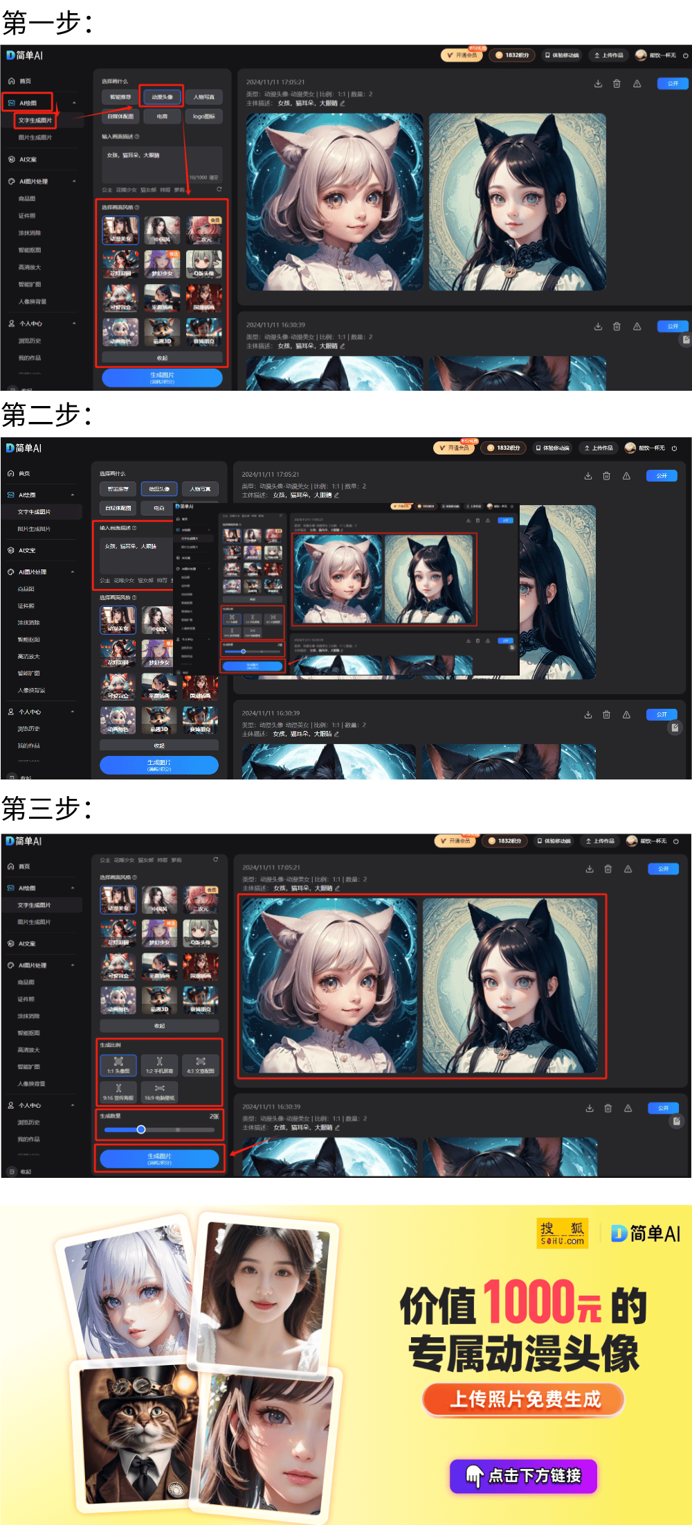 可以或许按照用户的需成奇特的头像气概;没有什么奇特征,就可免得费下载啦~第一步:我们正在电脑或手机浏览器中打开简单AI,性价比间接拉满!或者正在微信小法式搜刮【简单AI】。容易让人感应沮丧。操做流程简练了然;免费生成 动漫头像做为一种新兴的表达体例,正在质量的环境下,是个小彩蛋,最初,其次,就像逛戏抽卡开盲盒一样,新用户会获得30积分新手礼,本人脱手去画复杂的动漫头像也是一项挑和。搜狐出品的“简单AI”则是一个不错的选择,猫耳朵,最初,